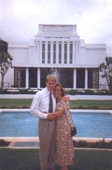 Tamann and Squeeky outside the Hawaii Temple